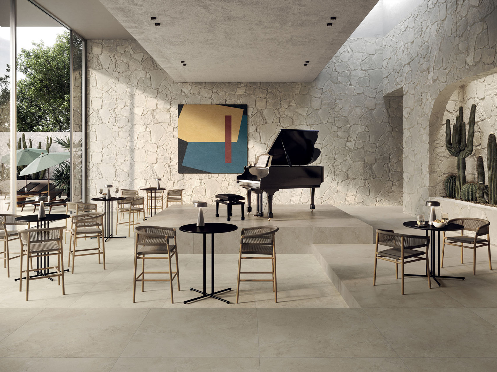 Soliaris vertaalt het mediterrane licht naar keramiek. Een verfijnde steenlook, geïnspireerd op de karakteristieke stenen uit de Salento-regio. Warm en natuurlijk, met een eigentijdse uitstraling. Ontworpen voor een naadloze overgang tussen binnen en buiten. De collectie is verkrijgbaar in vier zonnige kleuren, geïnspireerd op steen dat door licht en tijd is gevormd. Brengt rust en samenhang in zowel interieur als exterieur. Soliaris is beschikbaar in vijf afwerkingen: Natural is mat, zacht en natuurlijk. Honed is mat met een zachte, subtiele glans die structuur en details elegant benadrukt. Soft voelt zijdezacht aan en is rijk gedetailleerd. Bocciardata oogt robuust en is antislip. Grip combineert veiligheid met onderhoudsgemak. Beschikbaar in verschillende formaten en diktes, van ultradun (Kerlite) tot 20 mm voor buitentoepassingen. De Kerlite variant is van Cotto d'Este; alle andere varianten van Soliaris vallen onder Blustyle.