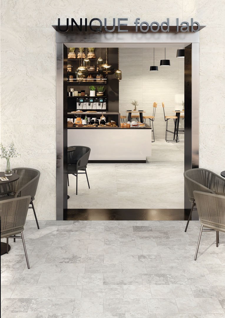 Unique Travertine is een natuursteenlook serie van Provenza gebaseerd op travertijn. De collectie bestaat uit drie looks: de bekende ‘Vein Cut’, die het horizontale doorzagen van de steen reproduceert, 'Minimal' is geïnspireerd op het doorzagen aan de onderzijde van de steen en 'Ancient' heeft een mooie verweerde look. Er zijn verschillende bijpassende mozaïeken en het decoratieve ‘Ruled’, die met driedimensionale groeven een versleten effect geeft. Voor een kastelenvloer-effect kies je de Opus Brecciato. Naast een matte afwerking (naturale), is er ook een glanzende (lappato), antislip (technica) en een gestructureerde glanzende (lappato antique) afwerking.