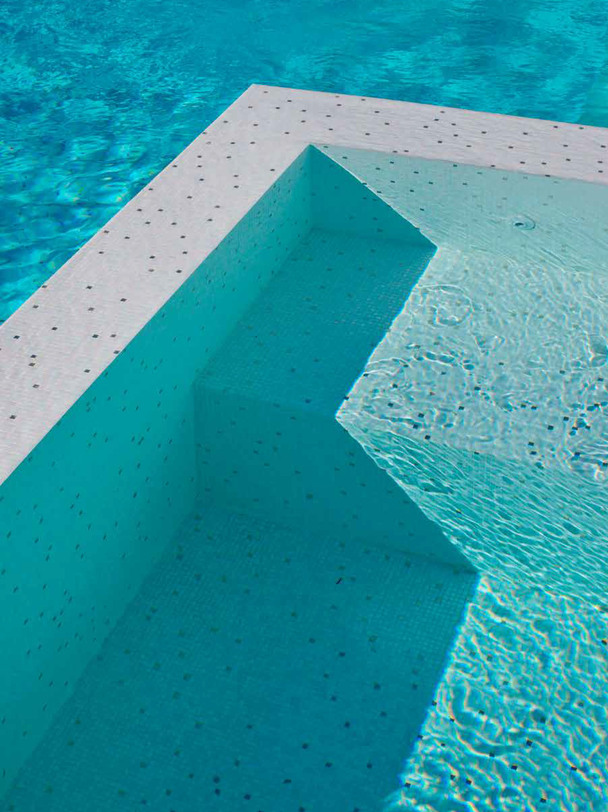Variations in color between the tesserae gives the surface a versatile look. The translucent effect of the Brillante mosaic makes it particularly suitable for intricate applications, where brightness and transparency have key roles, especially when enhanced by special lighting effects. Semi-transparent molten glass mosaic tiles, enriched with sparkling enamels and aventurina stone, mixed artfully to achieve a classic “veining” effect.